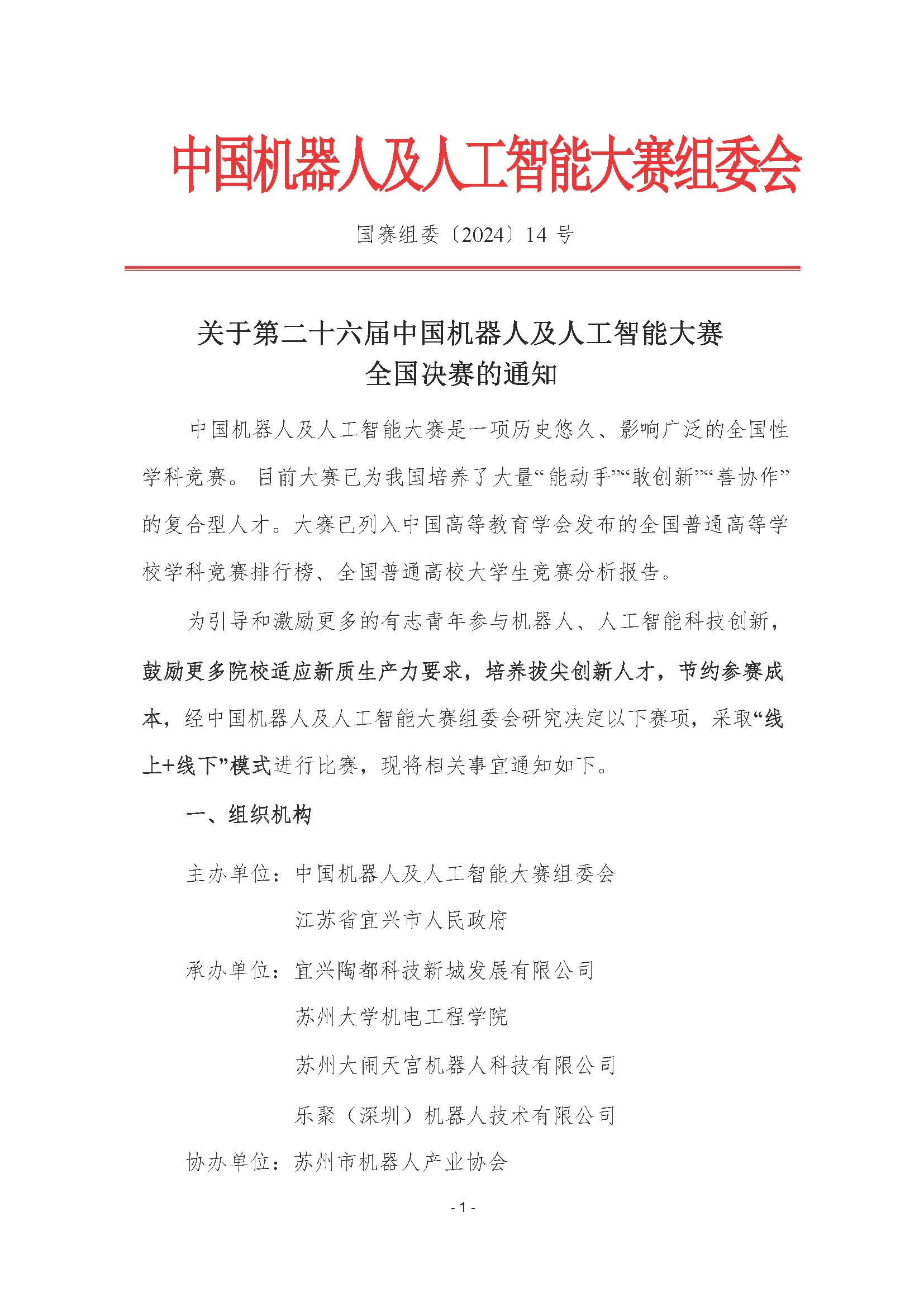 关于第二十六届中国机器人及人工智能大赛全国决赛的通知
