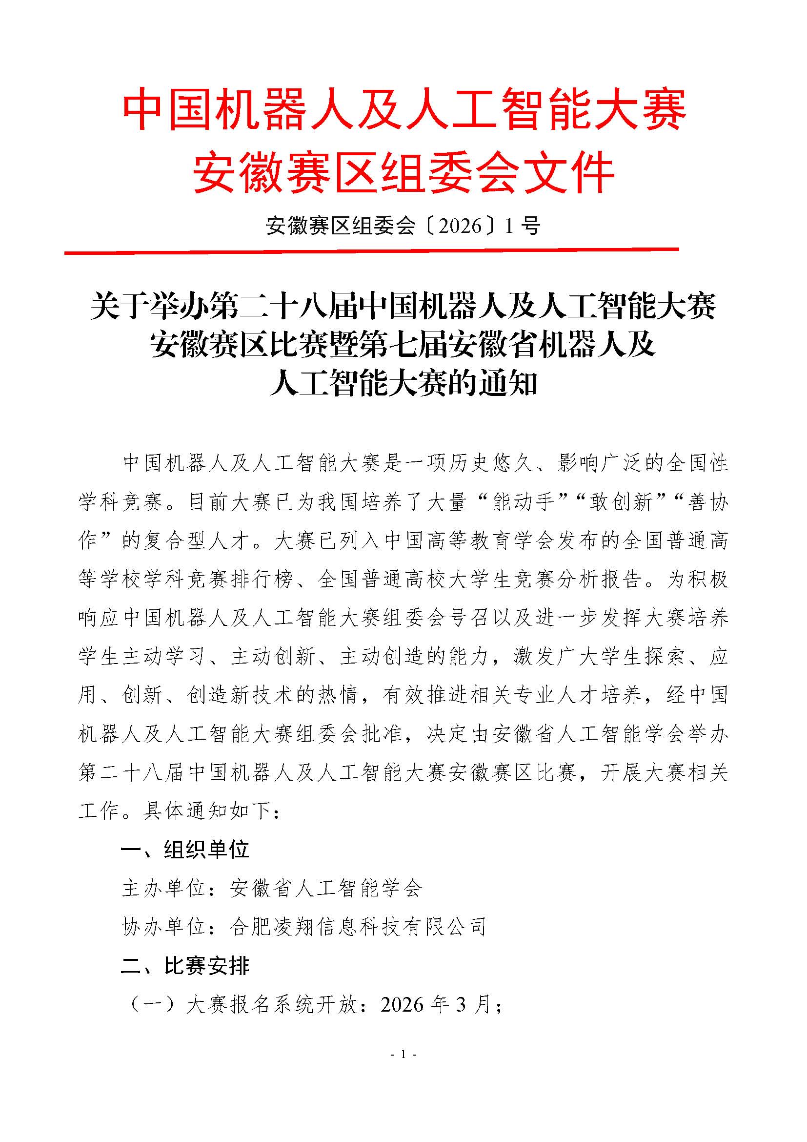 关于举办第二十八届中国机器人及人工智能大赛安徽赛区比赛的通知