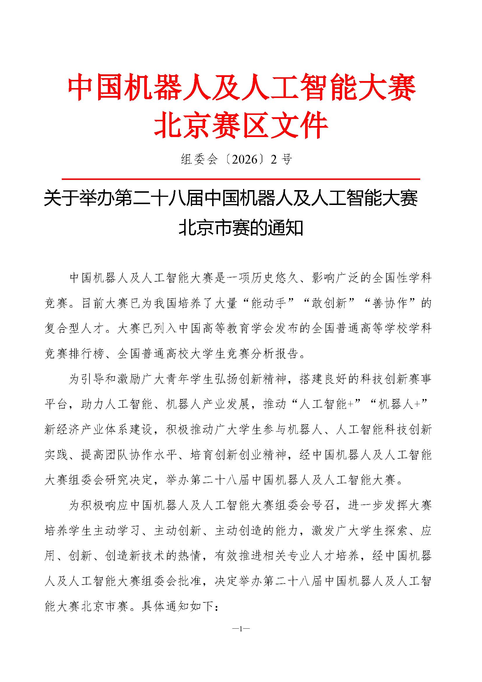 关于举办第二十八届中国机器人及人工智能大赛北京赛区比赛的通知