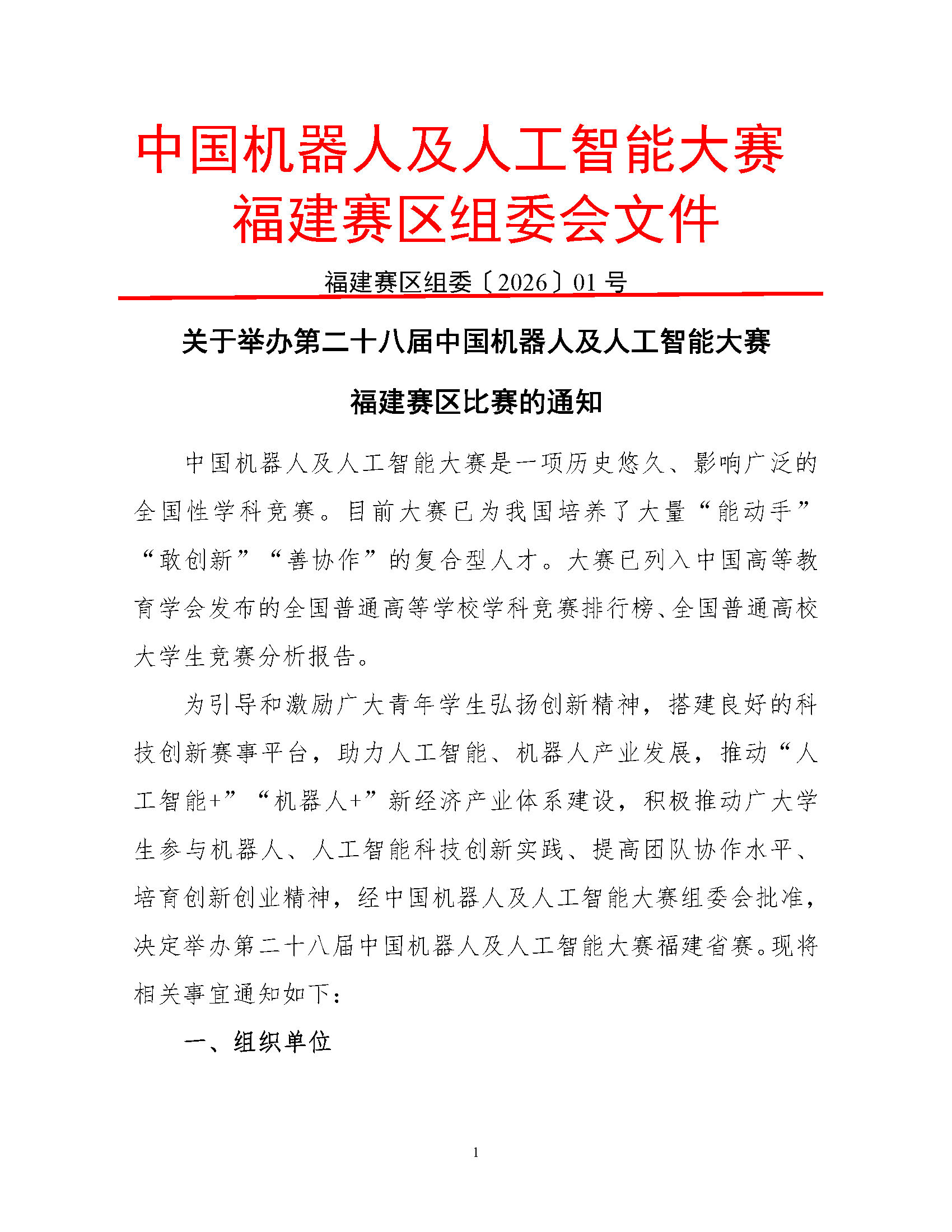 关于举办第二十八届中国机器人及人工智能大赛福建赛区比赛的通知