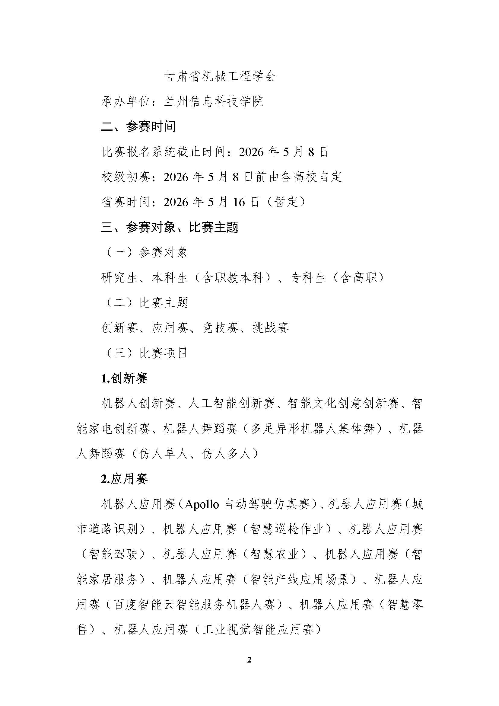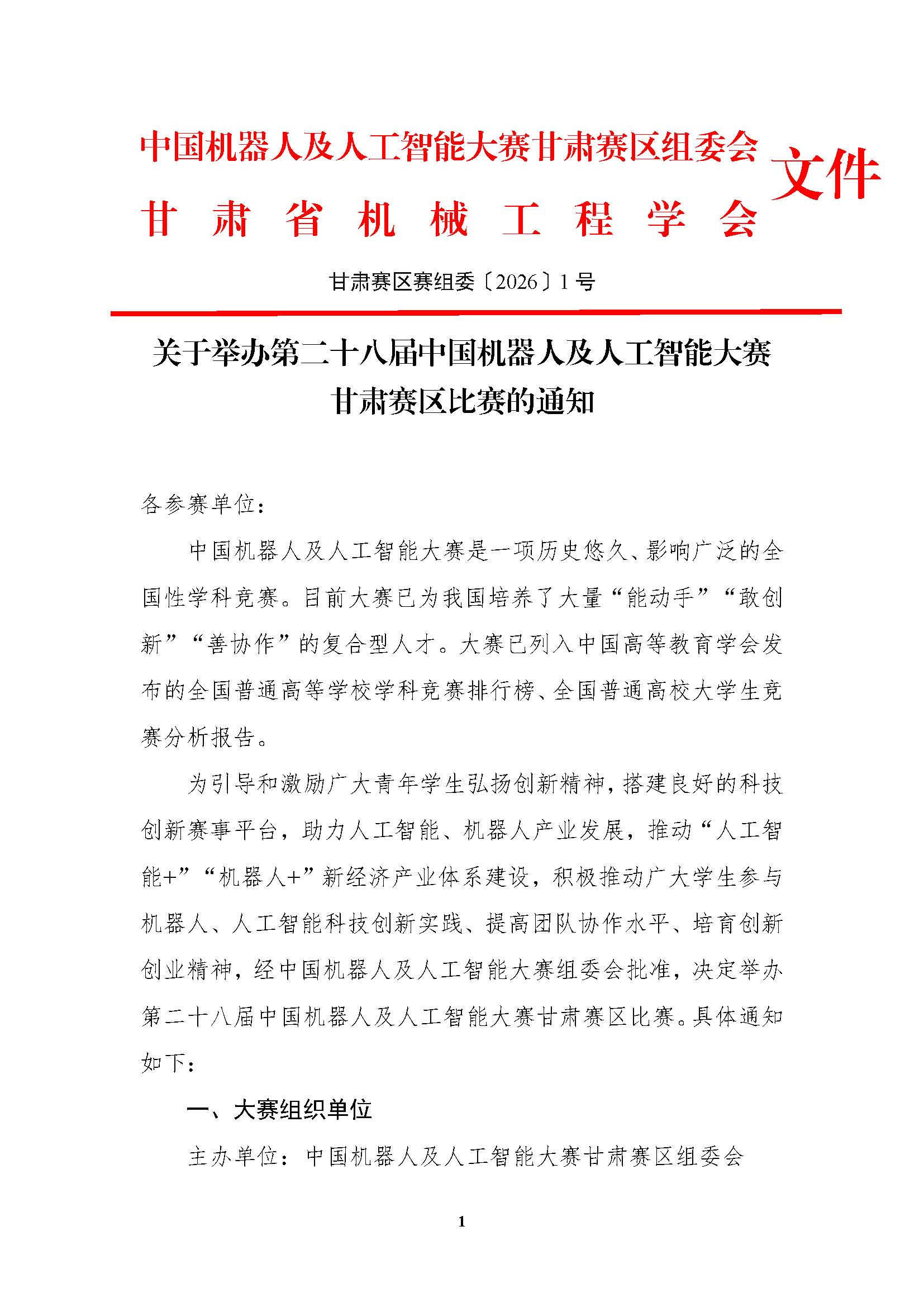 关于举办第二十八届中国机器人及人工智能大赛甘肃赛区比赛的通知