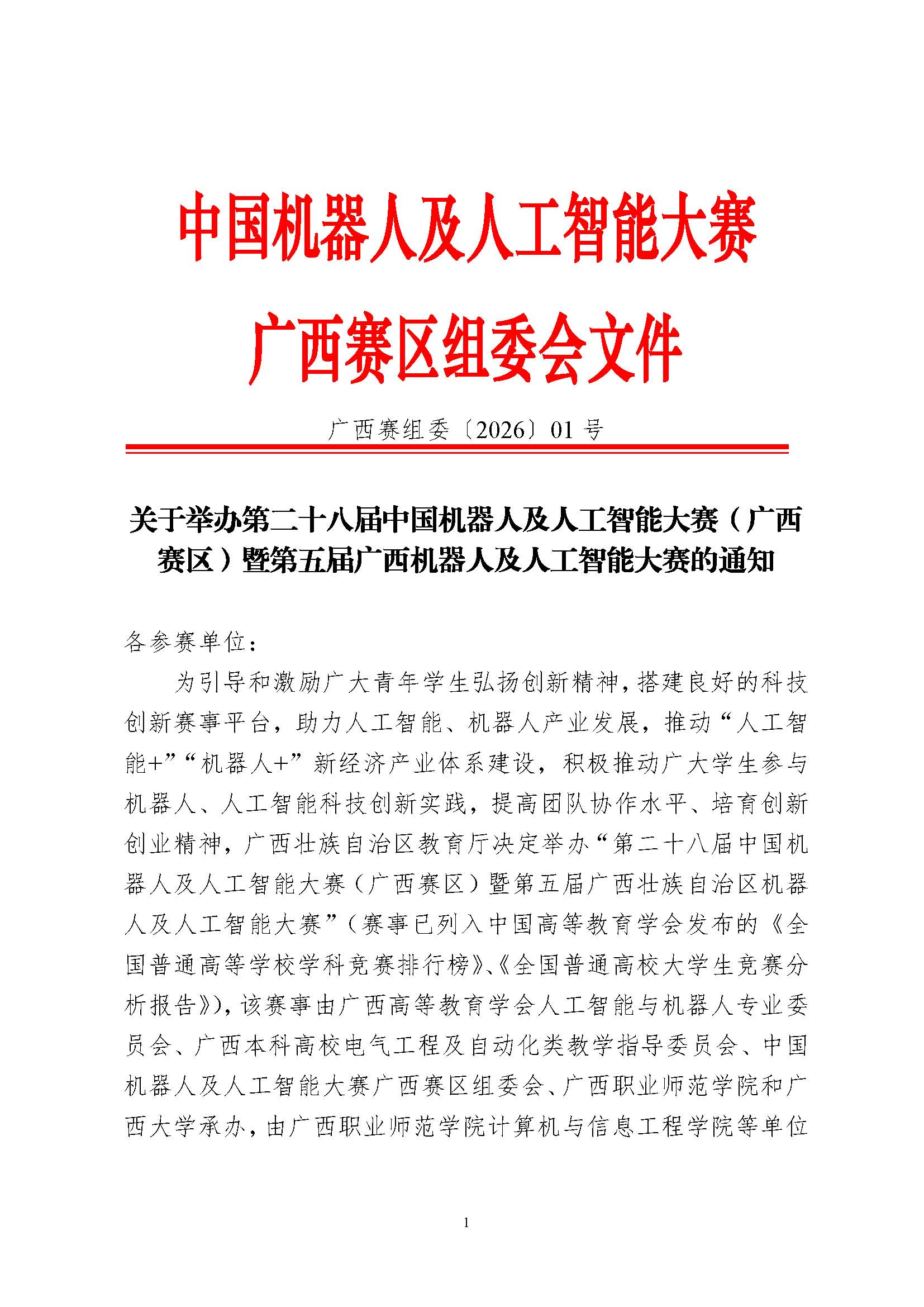 关于举办第二十八届中国机器人及人工智能大赛广西赛区比赛的通知