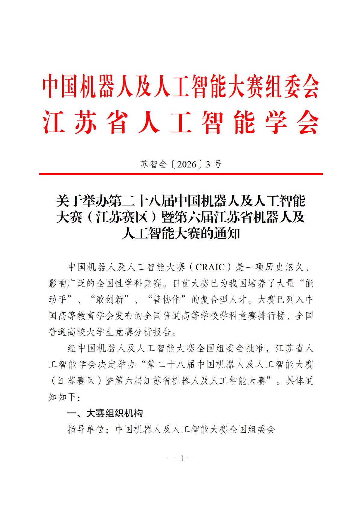 关于举办第二十八届中国机器人及人工智能大赛江苏赛区比赛的通知
