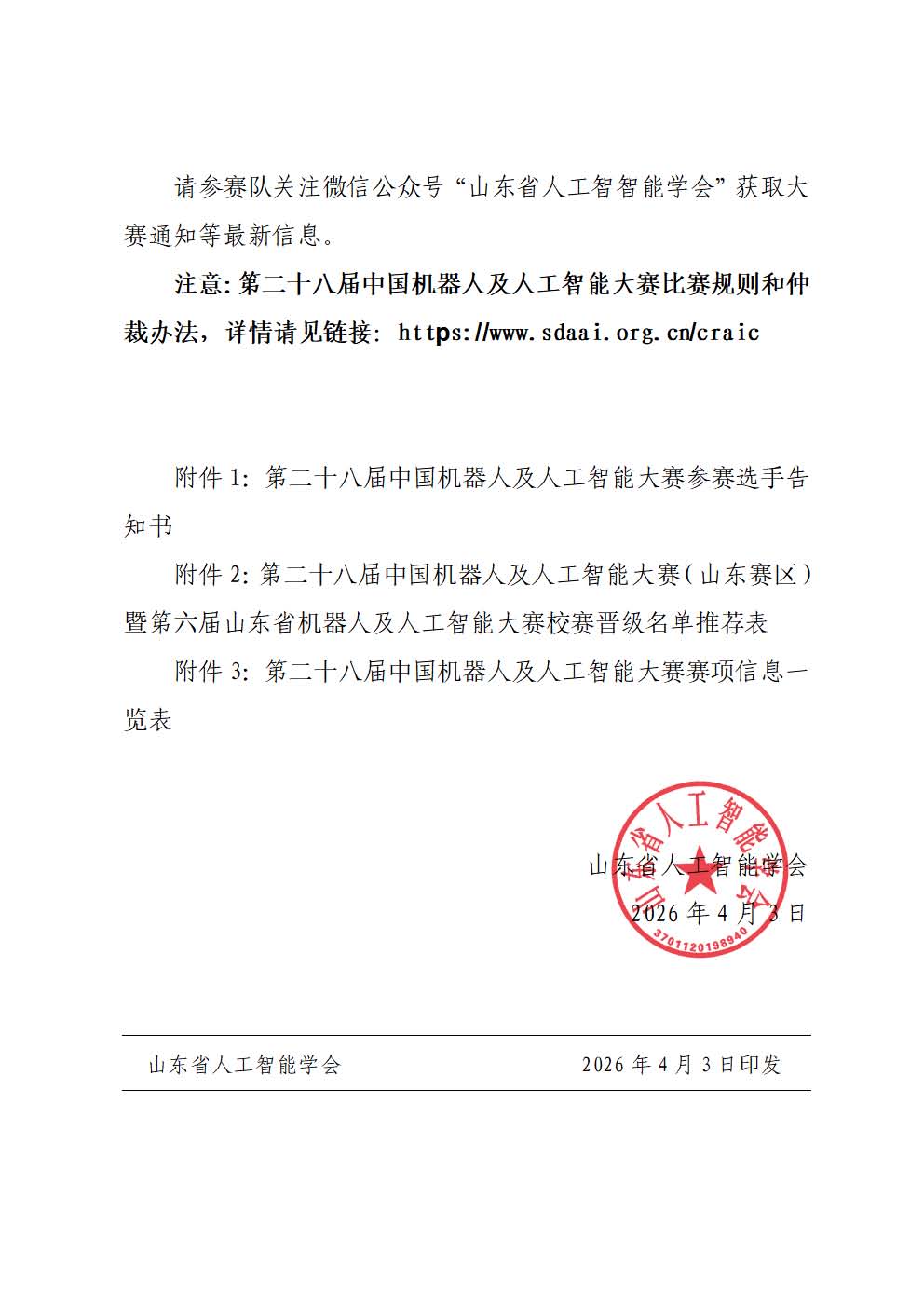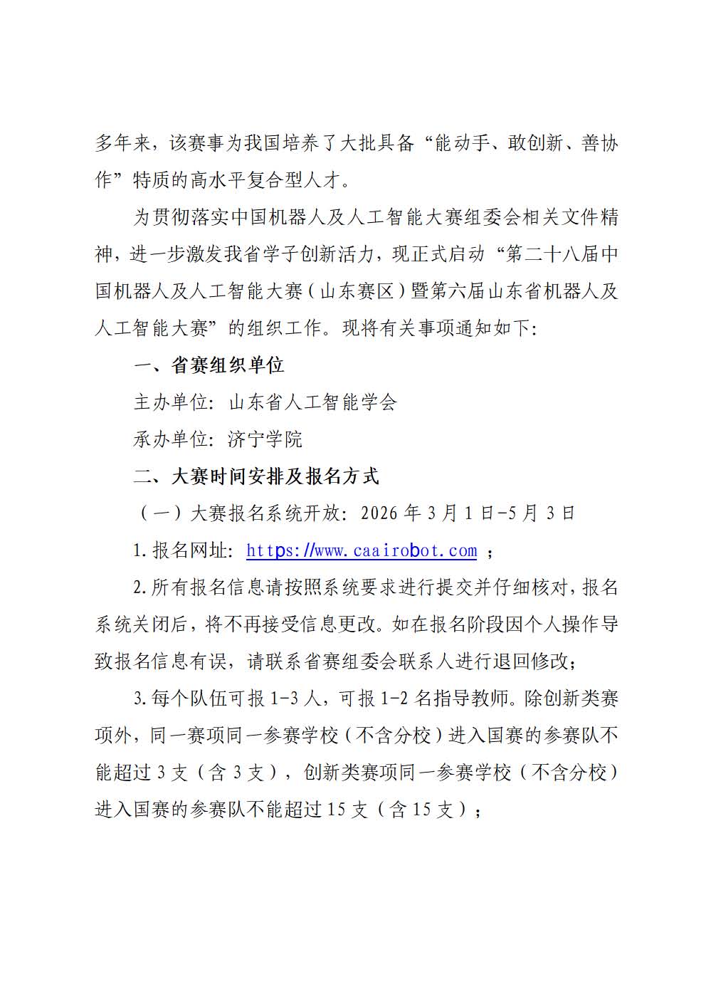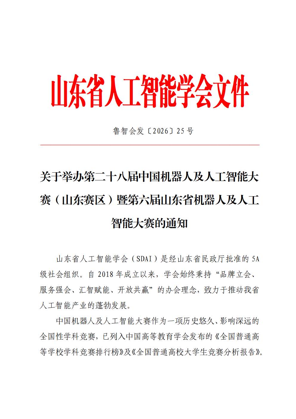关于举办第二十八届中国机器人及人工智能大赛山东赛区比赛的通知