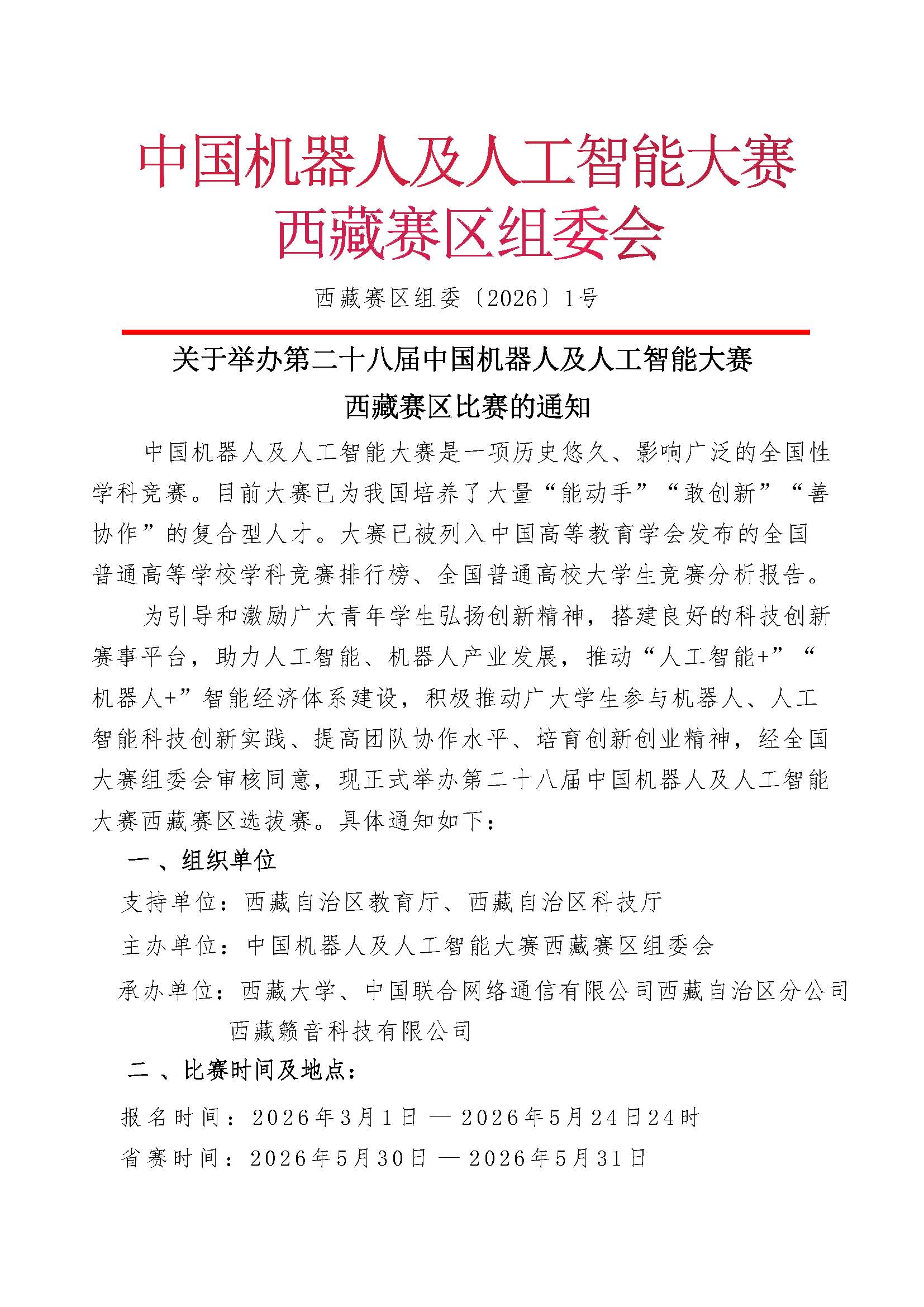 关于举办第二十八届中国机器人及人工智能大赛西藏赛区比赛的通知