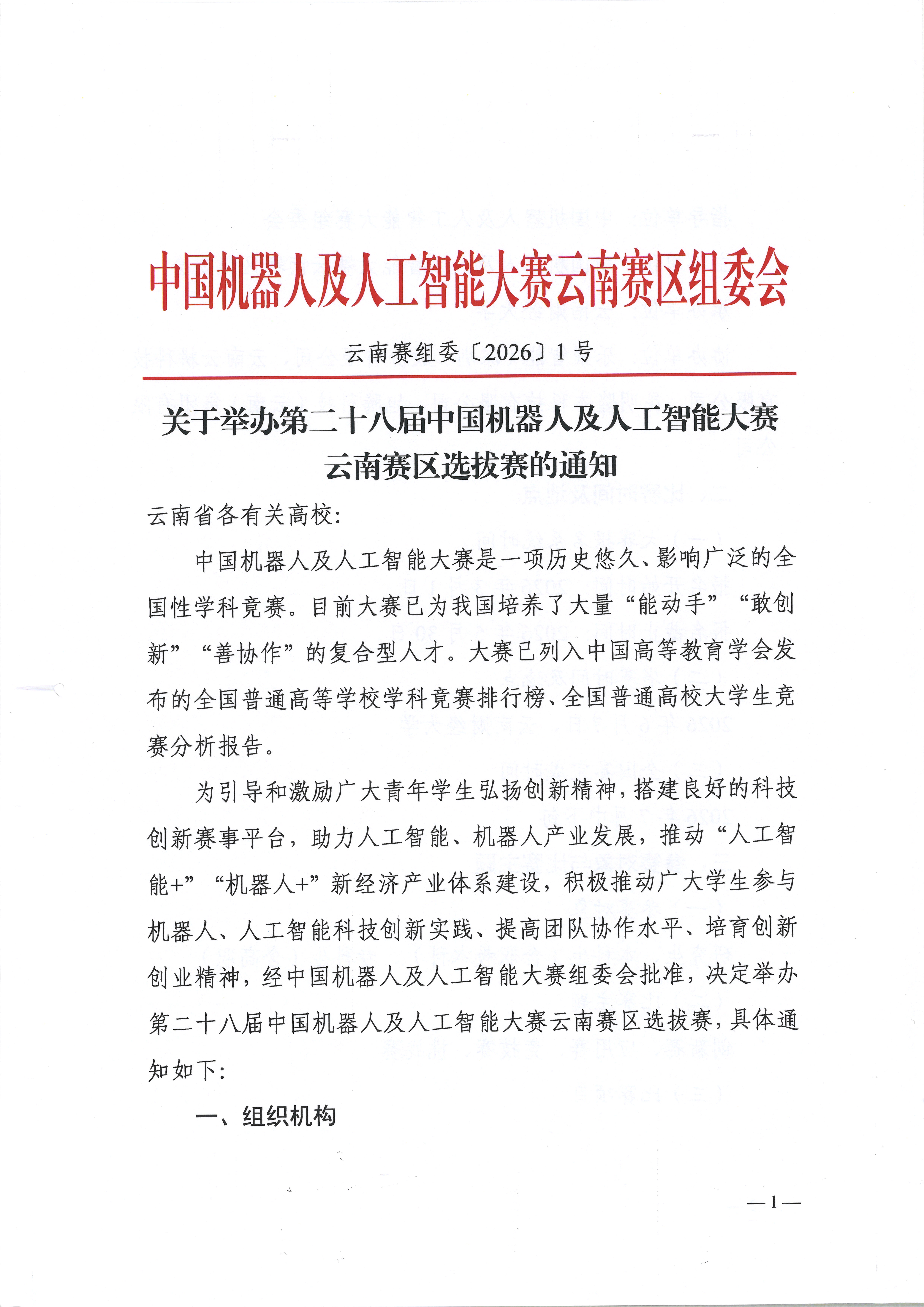 关于举办第二十八届中国机器人及人工智能大赛云南赛区比赛的通知